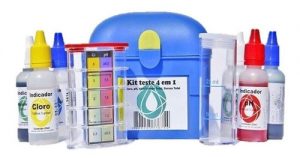 Kit Teste 4 em 1: Cloro, pH, Alcalinidade e Dureza Total.